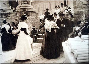1 9 0 4 … ce sont ces filles, ces belles filles coiffées à l’Arlésienne, dont on parle dans le monde entier. Elles ont conservé la noblesse et l’élégance de notre race provençale. Elles portent superbes, telles que des princesses, le ruban de Mireille. Elles savent parler d’une bouche douce comme du miel la douce langue des Félibres : elles sont la source d’amour, d’allégresse et de finesse, où l’œil de l’artiste et l’âme du poète viennent se mirer et boire l’idéal… F. MISTRAL